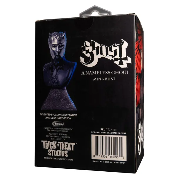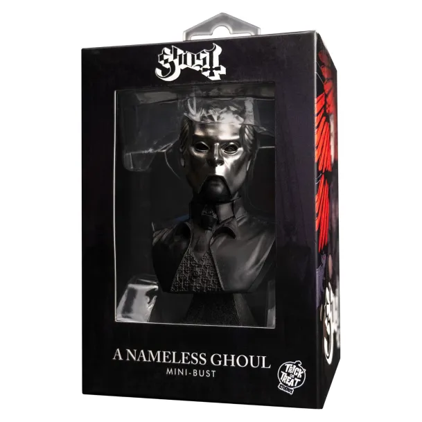 Trick or Treat Studios is proud to present the officially licensed, Ghost – Nameless Ghoul – Mini Bust. This resin bust is meticulously painted to perfection. Attached to a bust stand so that you can display it in your home, office or anywhere your monstrous heart desires. Arrives in a beautiful collector’s window box.