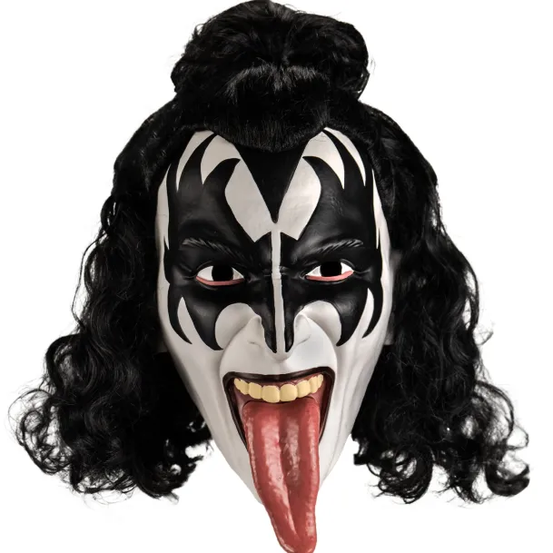 Trick or Treat Studios is proud to present the officially licensed KISS – The Demon Deluxe Injection Mask. This deluxe face mask is made of rigid plastic sculpted and painted to look exactly like The Demon on stage! The mask has an elastic strap to comfortably hold it in place with a styled wig attached to the mask for full coverage and easy wear.