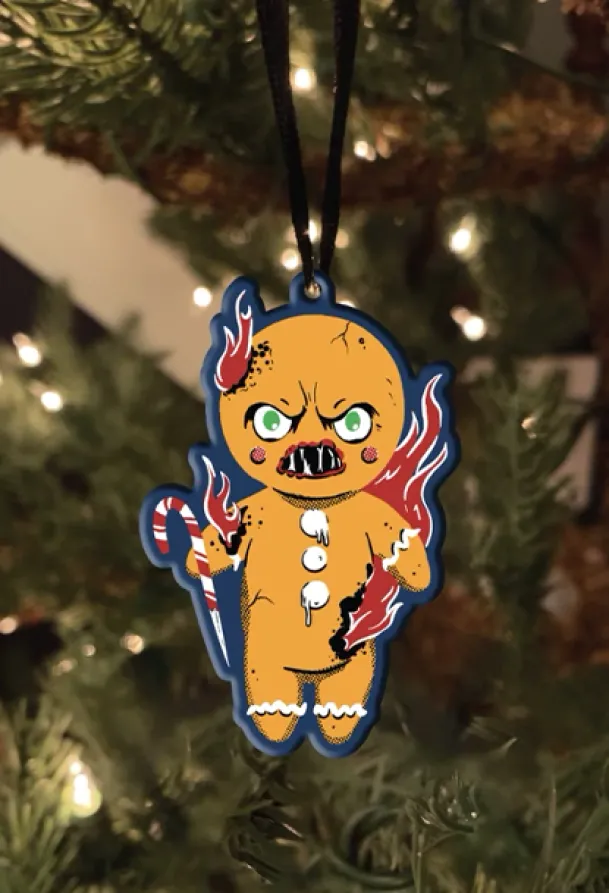 Trick or Treat Studios is proud to present the officially licensed, Holiday Horrors – Krampus – Gingerbread Man – Metal Ornament. This highly detailed ornament is beautifully screen printed on a metal, double sided frame. The ornament comes with a ribbon so that you can hang it in your car, house, office, and of course, on your Christmas Tree.