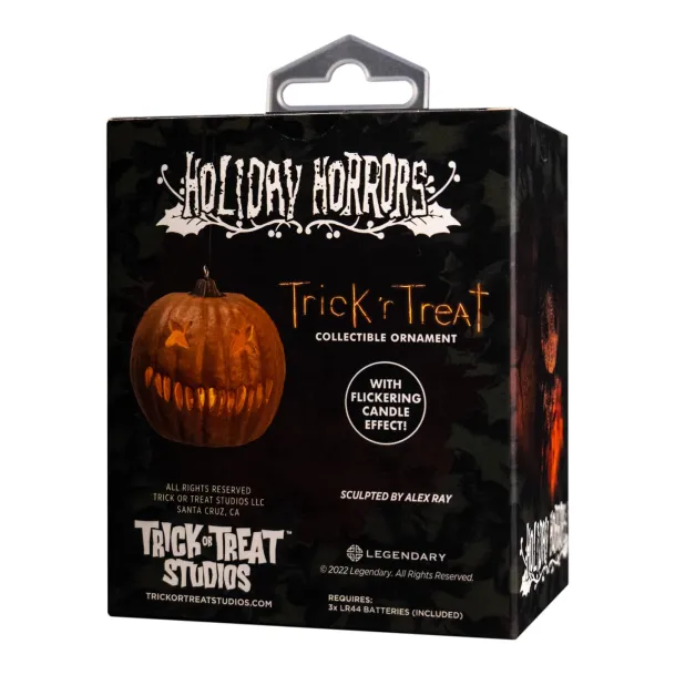 Trick or Treat Studios is proud to present the officially licensed, Holiday Horrors – Trick ‘r Treat – Light Up Ornament. Sculpted with every detail of Sam’s iconic pumpkin represented, this resin ornament is meticulously painted to perfection. The light up feature is activated by a small switch on the bottom of the pumpkin, *battery is included*. Arrives in a beautiful collector’s window box. Get yourself our Holiday Horrors – Trick ‘r Treat – Light Up Ornament and proudly display it in your car, house, office, and of course, on your Christmas Tree.