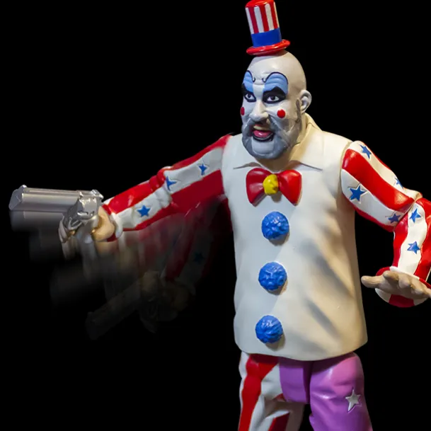 Howdy Folks! You like blood? Violence? Freaks of nature? Well, then boy do we have something for you! Trick or Treat Studios is thrilled to present the House of 1000 Corpses – Finger Lickin’ Pistol Whippin’ Captain Spaulding – Action Figure! This figure features Finger Lickin’ Pistol Whippin’ Action, and includes great accessories – tasty fried chicken bucket and drumstick along with a pistol for all your action needs. Packaged in retro style action figure packaging just like your favorite figures from the toy aisle. Backing card features art by Dug Nation.