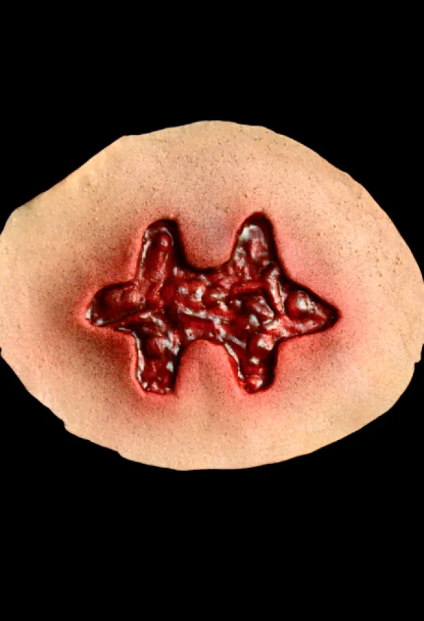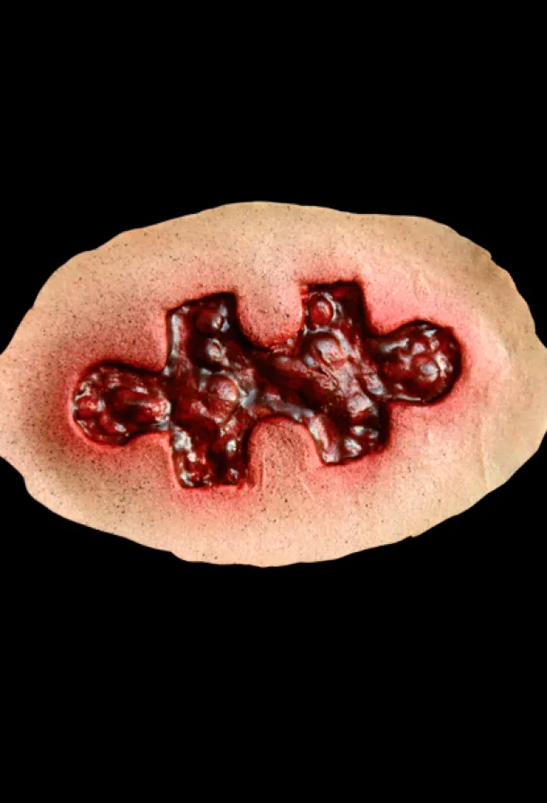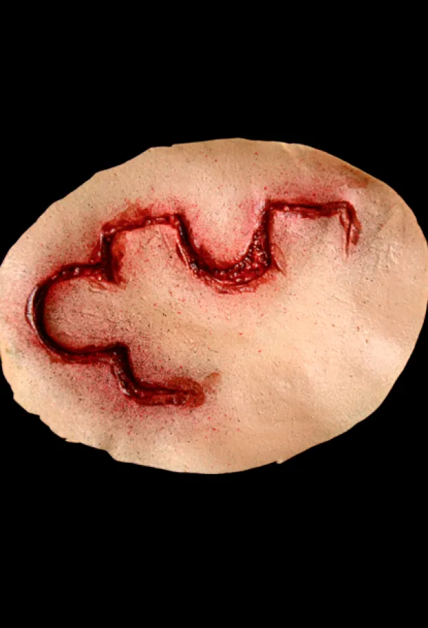 Trick or Treat Studios is proud to present the officially licensed, Saw – Puzzle Pieces Appliance Kit. This amazing kit is based on numerous pictures of Jigsaw’s victims all which bear the carving of puzzle pieces in their flesh. Now you can be a victim of Jigsaw’s games. This kit includes four latex appliances.